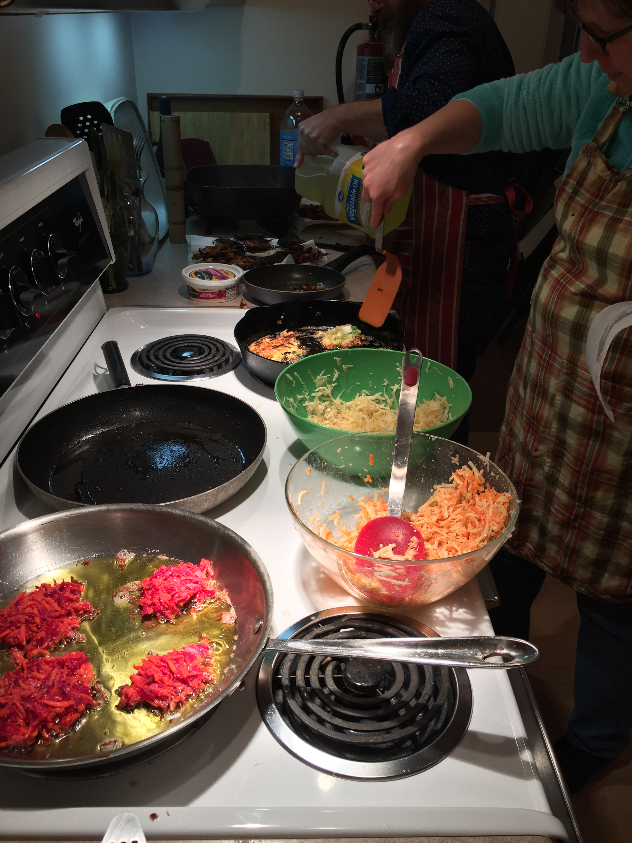 We had a great cooking class and shared some tips and tricks to getting those latkes extra crispy. We even tried adding various spice combinations to our sour cream and applesauce fixings! It was a lot of fun.