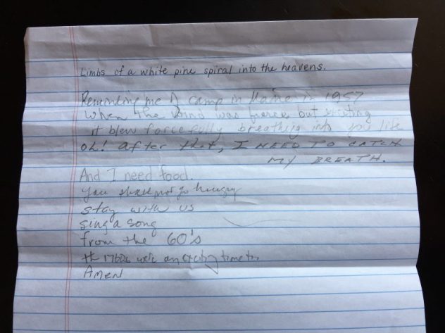 A small but mighty group gathered on Saturday, April 22, for a Shabbat confluence of Earth Day, National Poetry month, and Torah readings detailing prohibitions and possibilities of food and diets, from camels to pigs, pelicans and hawks. Many thanks to Margi Rogal for leading an Exquisite Corpse poetry collaborative, a poetry game that traces its roots to 1930s French Surrealists. Our poetic d’var Torah then, is shared below: